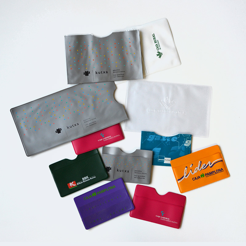 Elaboramos fundas de pvc para preservar documentos o herramientas de industria o jardinería, carpetas y estuches de diferentes tamaños y estilos, muestrarios y displays a medida, elementos diversos de merchandising, maletines y complementos en piel y polipiel, y bolsas de politeno en varios formatos. Entra en la categoría correspondiente y podrás ver una muestra representativa de lo que podemos ofrecerte.